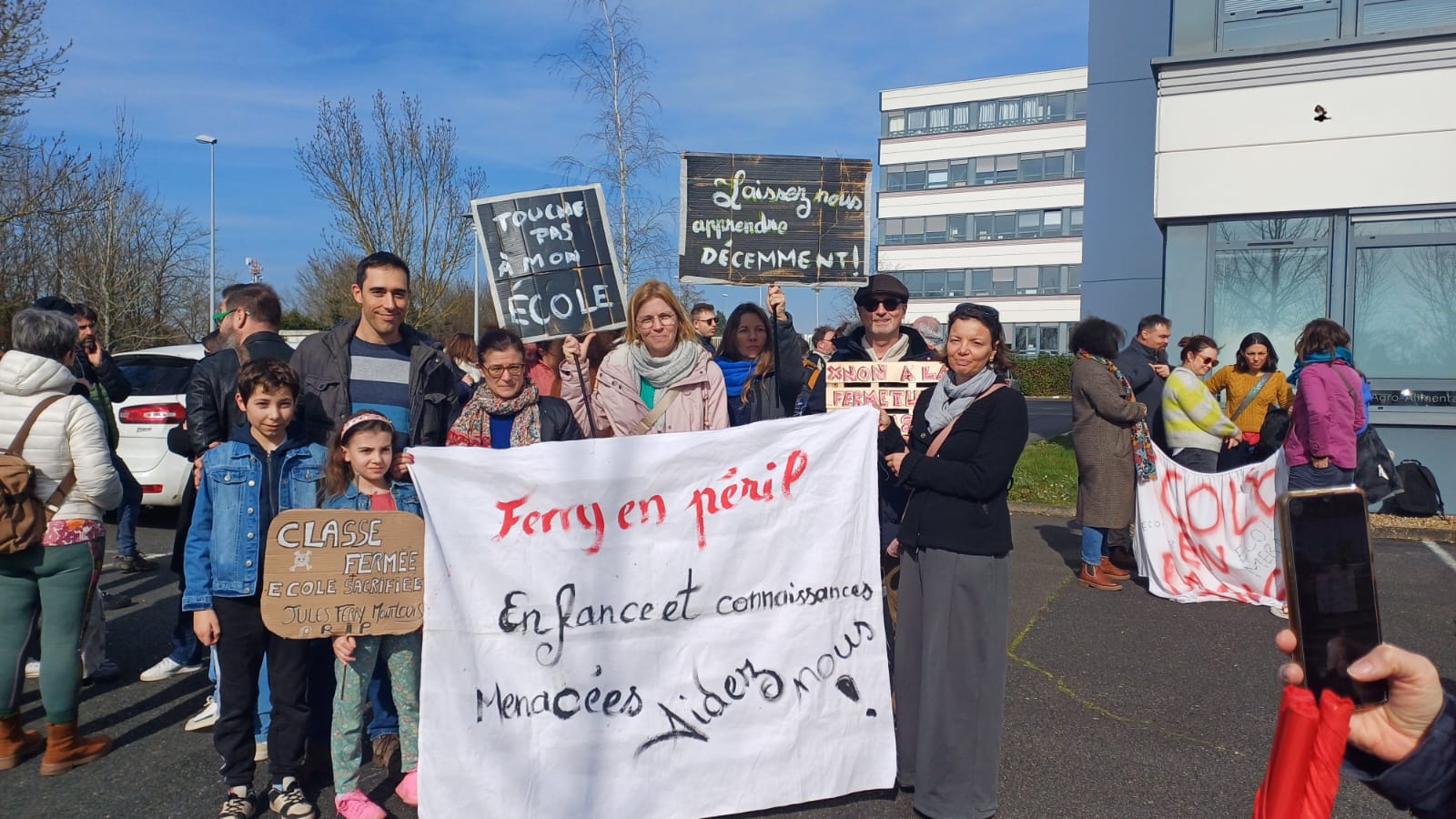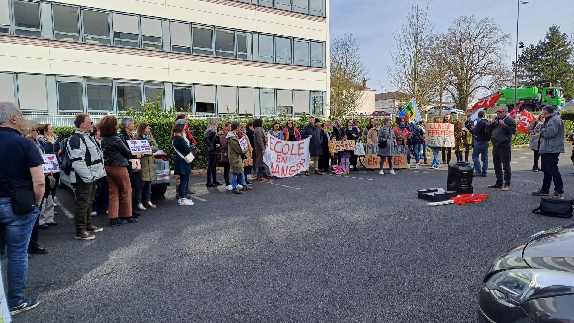 | Plus d’une soixantaine de personnes au rassemblement à la DSDEN ce jour ! Le SNUDI-FO était aux côtés des personnels mobilisés et des écoles ! Une AG de parents aura lieu ces prochains jours pour stopper ce carnage ! Continuons la mobilisation ! |