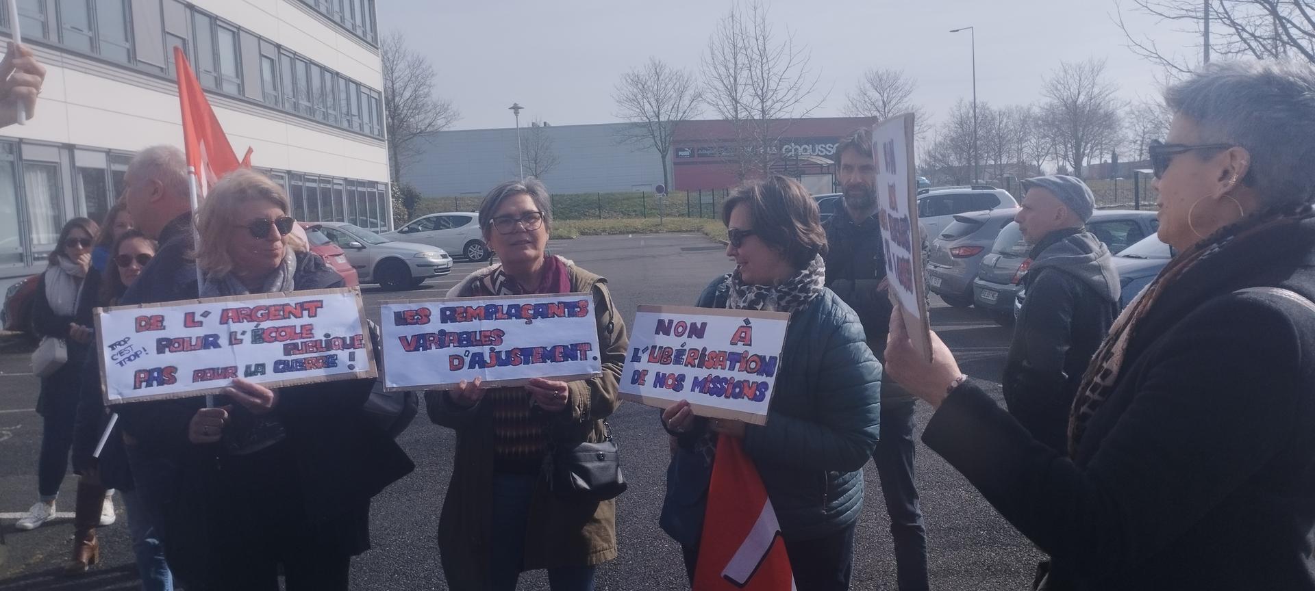 Le SNUDI-FO était aux côtés des personnels remplaçants grévistes au rassemblement à la DSDEN aujourd’hui pour dire NON A LA FUSION ZIL/BD !
